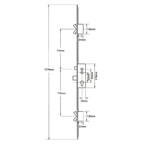 Although some original Avocet multipoint 4 roller door locks feature a single spindle and lift lever functionality, all current locks are only available in a double spindle nightlatch configuration. The centres are at 62mm and 92mm, but if the nightlatch functionality is not required, the lock can still be used as a lift lever version using the top spindle.