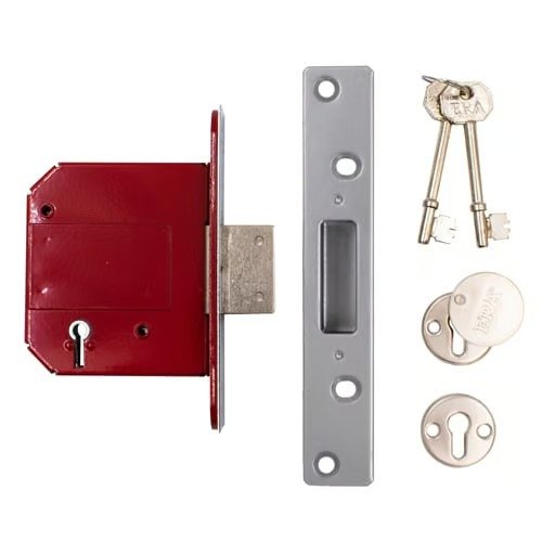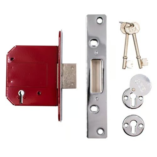 In order to comply with the British Standard, these locks must feature: – 5 levers with at least 1000 key differs – Anti pick features to prevent the lock from being picked – Hardened plates that protect the sides of the lock from being drilled – a minimum 20mm bolt throw into the keep or strike