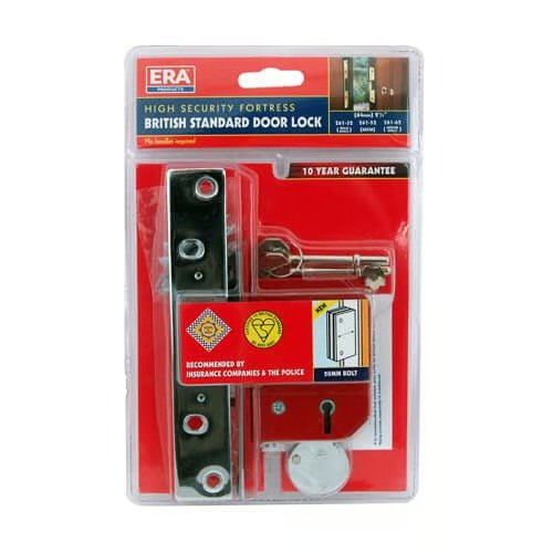 The ERA Fortress mortice lock is designed with hardened steel plates to resist drilling and two hardened steel plates in the deadbolt to resist hacksawing. The keys have 1000 variations for added security and the all steel levers have false notching to resist lock picking