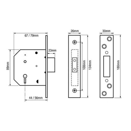 Common mortice locks are either 2.5″ or 3″ wide but there are lots of exceptions to this. Please be sure to check the sizes in the product selection table before ordering.