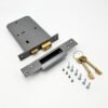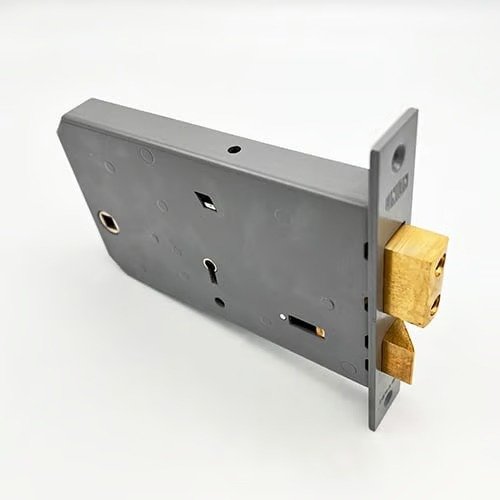 This lock is supplied with a security striking box in a grey finish.
