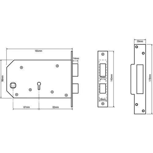 In line with a number of other mortice locks, these locks feature a silver lock case but they have unique measurements that identify them from other mortice locks. Please refer to the line drawing for details.