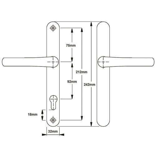 The distance between the fixing screws is 212mm with the bottom screw positioned 18mm below the euro profile cut-out.