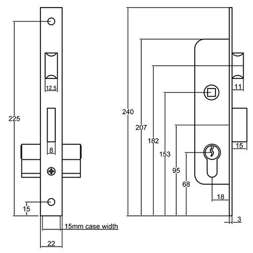 - Supplied with strike plate, double sided eurocylinder, 3 keys and 2 escutcheons.