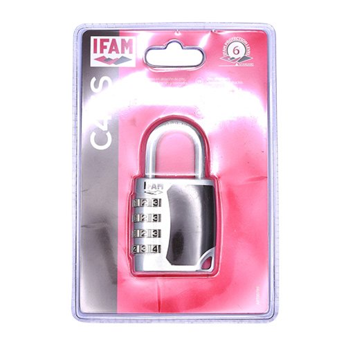 This Ifam combination padlock has a high precision injected alloy body with ahardened chrome-plated shackle andanti-slide rubber surface with the ability toset and reset your own code.