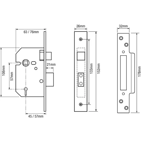 Common mortice locks are either 2.5″ or 3″ wide but there are lots of exceptions to this. Please be sure to check the sizes in the product selection table before ordering.