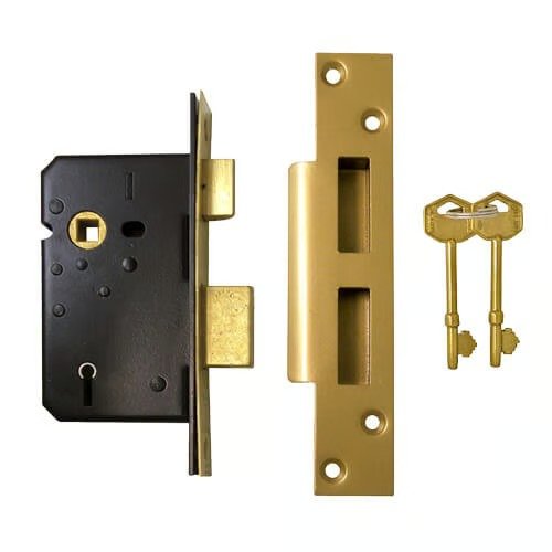 These locks meet the requirements of BS3621 and you can find the BSI kitemark on the faceplate. In order to comply with the British Standard, these locks must feature: – 5 levers with at least 1000 key differs – Anti pick features to prevent the lock from being picked – Hardened plates that protect the sides of the lock from being drilled – a minimum 20mm bolt throw into the keep or strike You can find a very useful guide to British Standards for mortice locks on the MLA’s website here: https://www.locksmiths.co.uk/faq/what-are-bs3621-british-standard-locks/