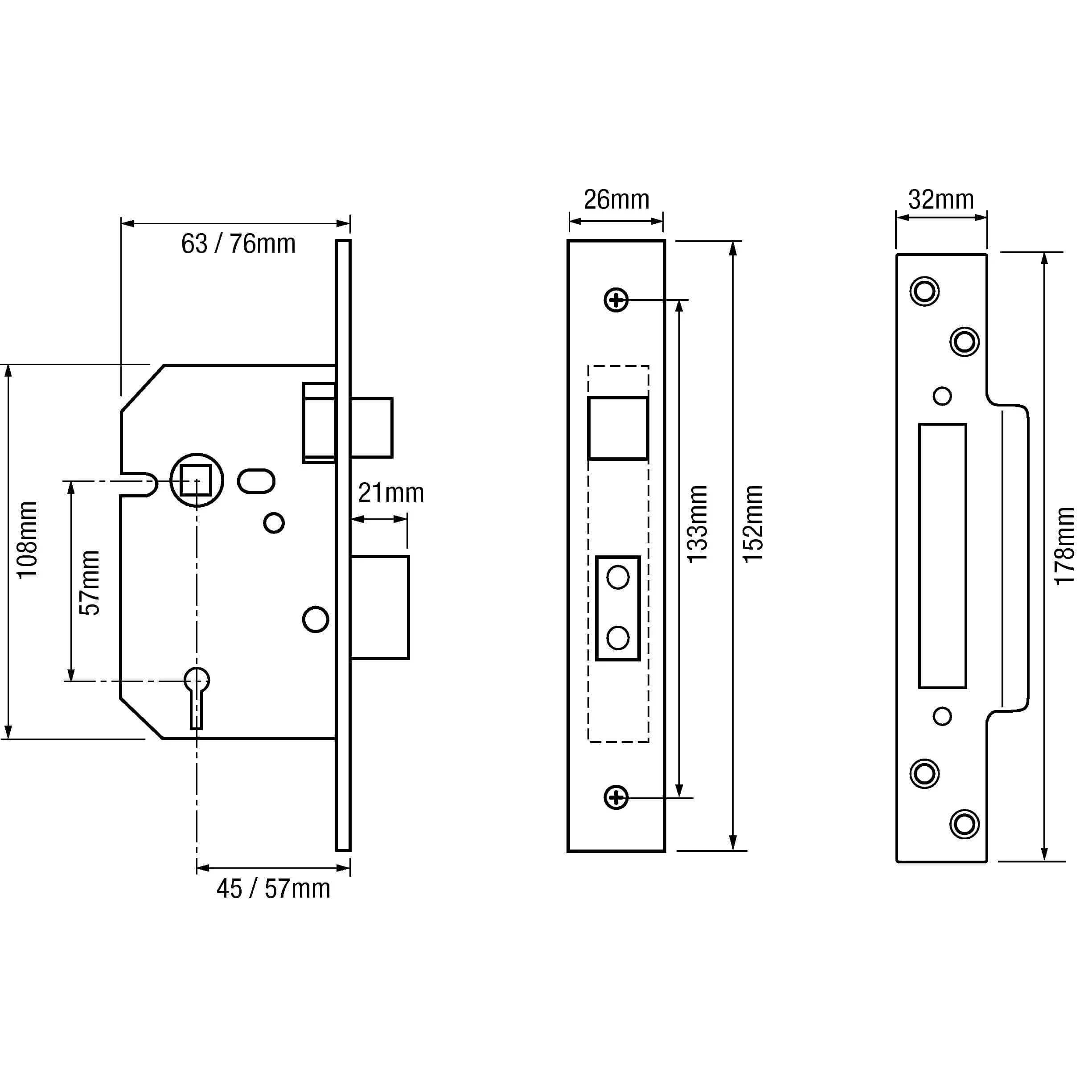 This lock is supplied with a security striking box (to meet the requirements of BS3621) in a matching finish to the lock faceplate.