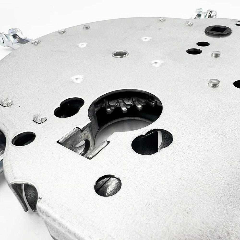 Certain versions of this gearbox also feature a black plastic cover on one side (with metal on the other side).