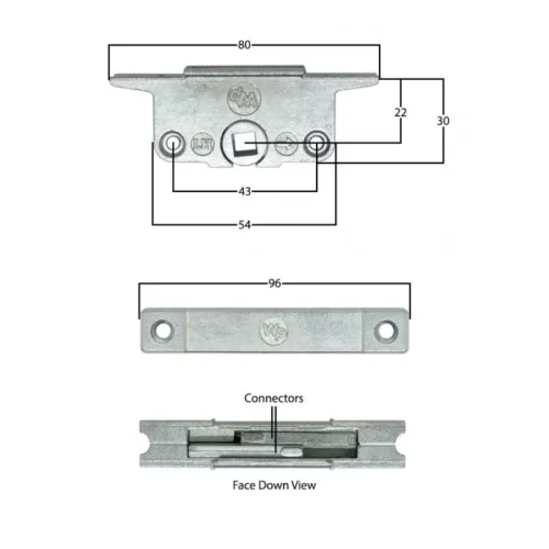 Supplied with cover plate Faceplate 80mm x 15mm Backset 22mm