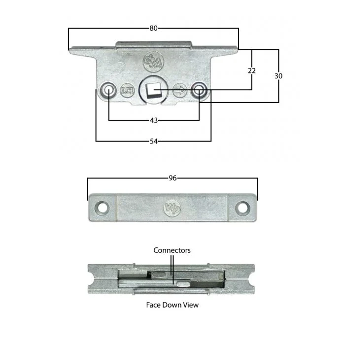 Avocet multipoint door locks are easily identifiable once they are removed from the door. Faceplates are usually stamped with the Avocet logo, although older locks may have the “WMS” logo stamped. Gearboxes are uniquely shaped, with the cut out extending below the latch, which is unique when identifying multipoint locks.