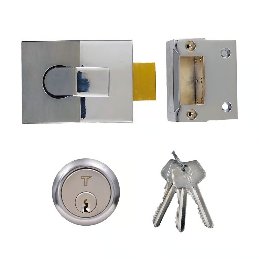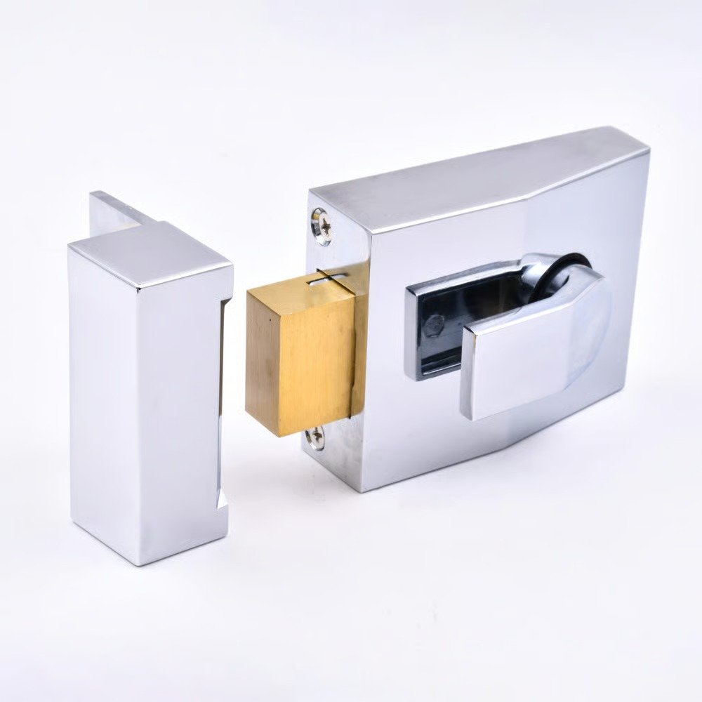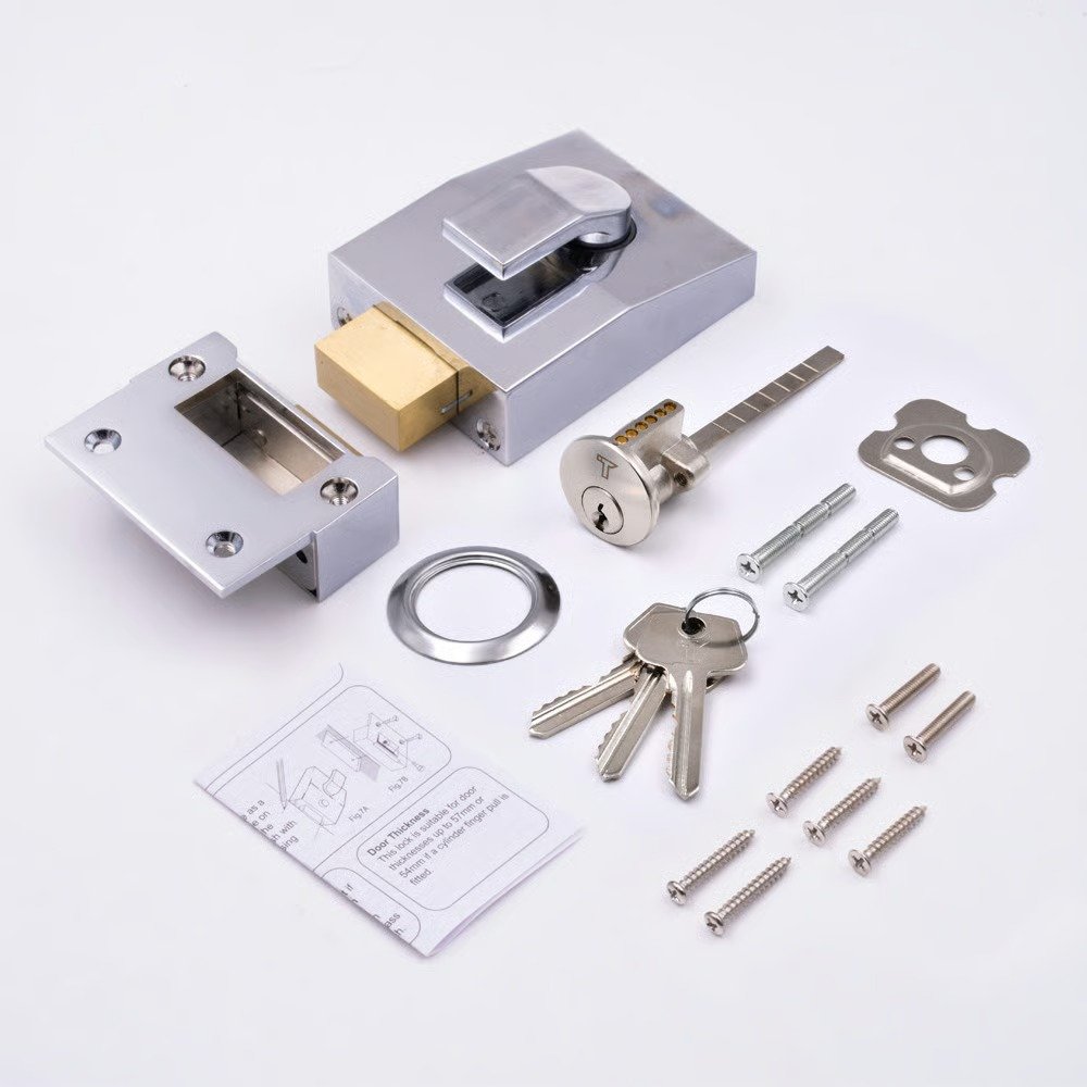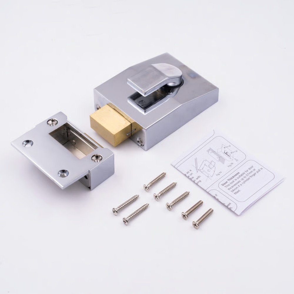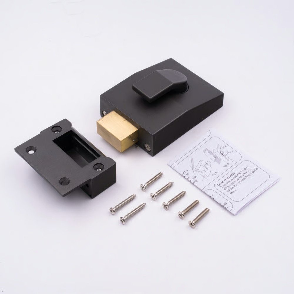 From the outside the key must be used to secure and open the door, from the inside the handle is used. It is important to consider that unlike sprung latch locks with deadbolt nightlatches a positive action must be taken after closing the door to ensure it is secured.