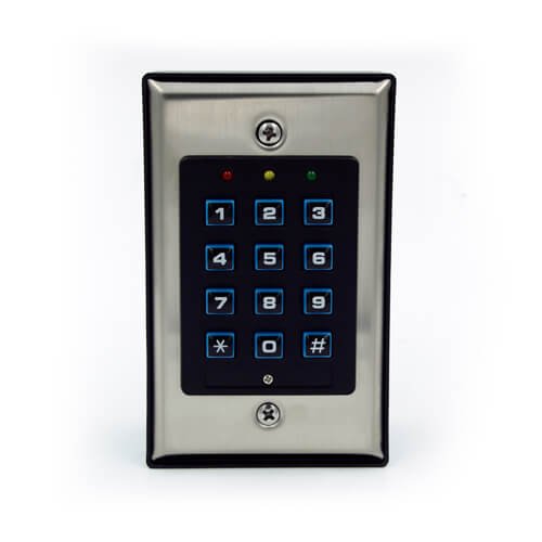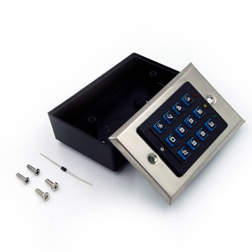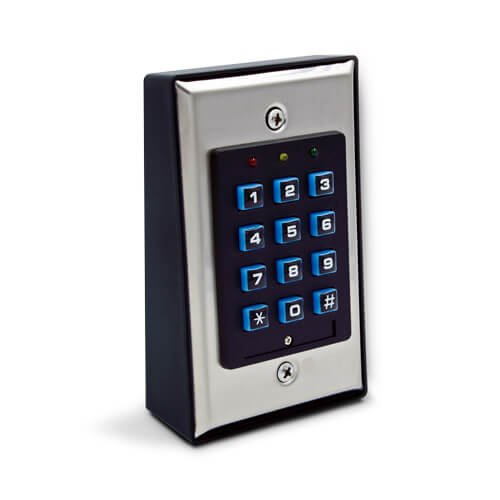 This TSS access keypad is a great value entry level keypad for internal use. In a stainless steel housing with a black plastic keypad, this unit features back-lit keys, works on 12V DC power and is suitable for up to 120 users.