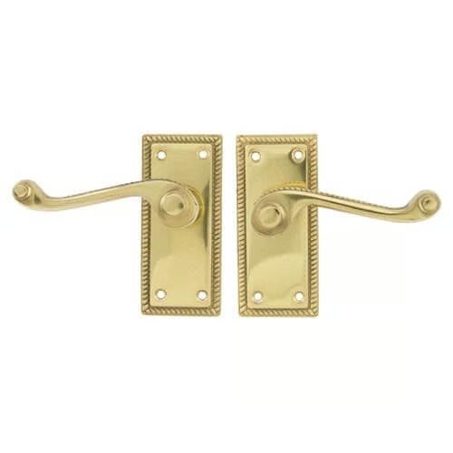 Georgian handles with a scroll lever available in latch, lock, bathroom and privacy variants for interior use only.
