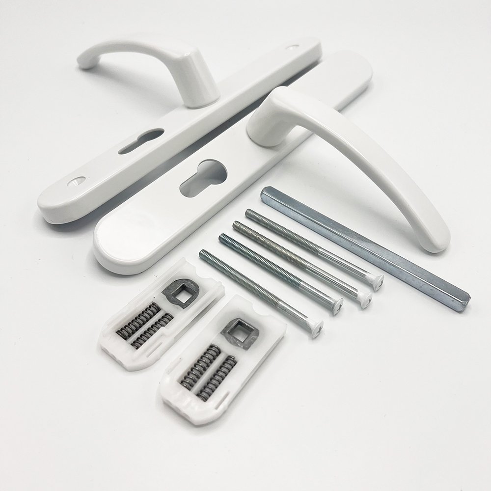 The 48mm PZ TSS lever/lever multipoint door handle is a high-quality multipoint door handle that is available in a range of finishes, including white, black, polished chrome, silver and polished brass.