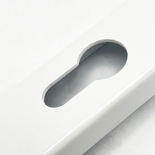 This handle is compatible with most 92mm PZ multipoint locks with a hole underneath the spindle insert.