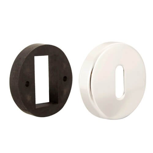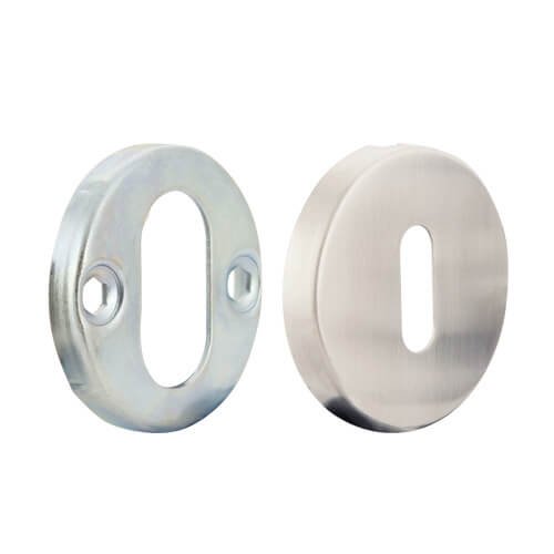 These escutcheons come in two parts with the first being screwed in place and the second concealing the fixings. Fixings are supplied as standard.