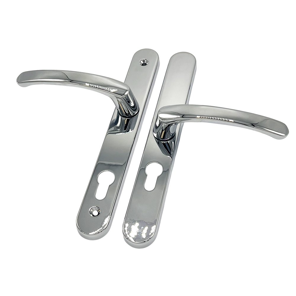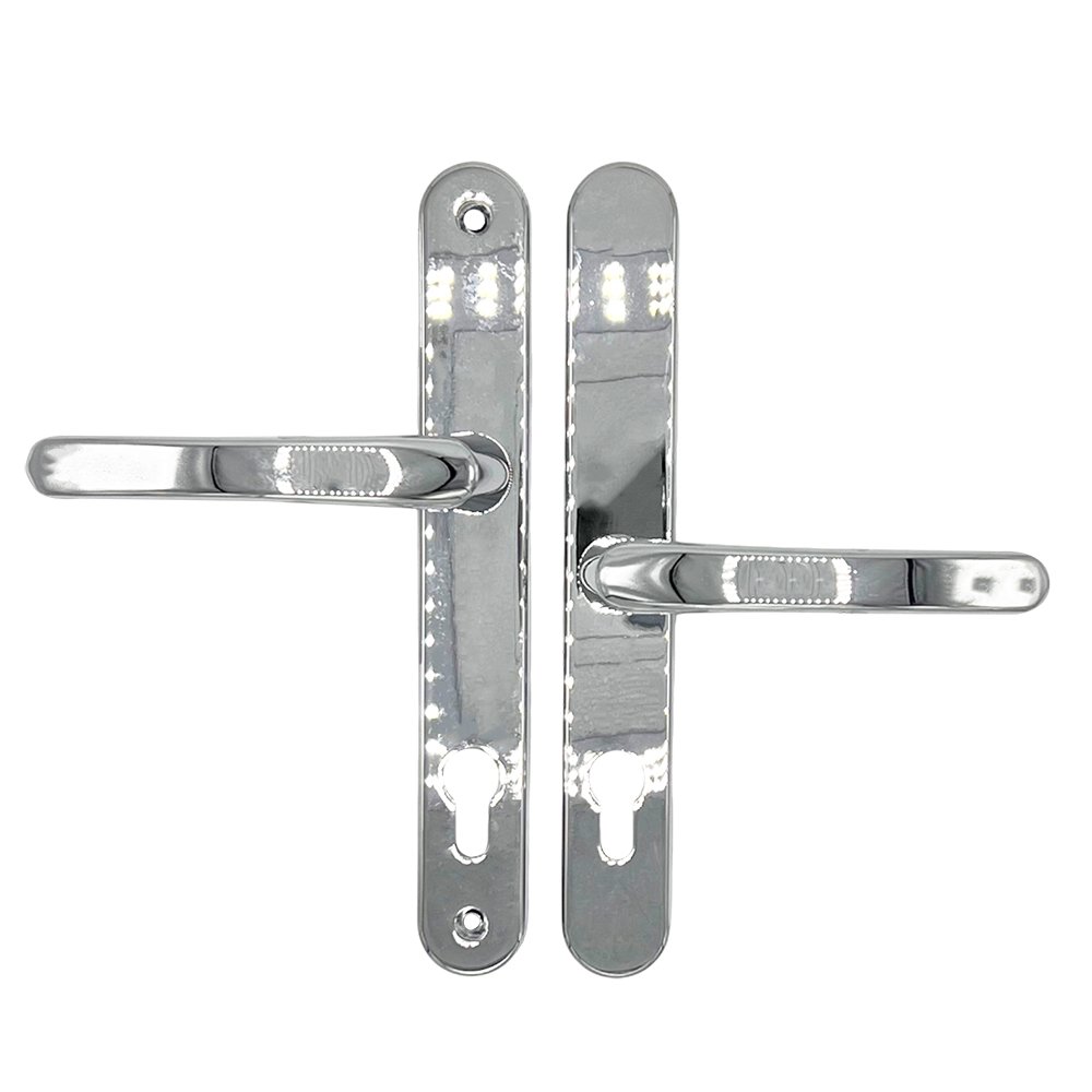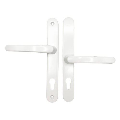 The 92/62mm Offset PZ TSS lever/lever multipoint door handle is a high-quality multipoint door handle that is available in a range of finishes, including white, black, polished chrome, silver and polished brass.