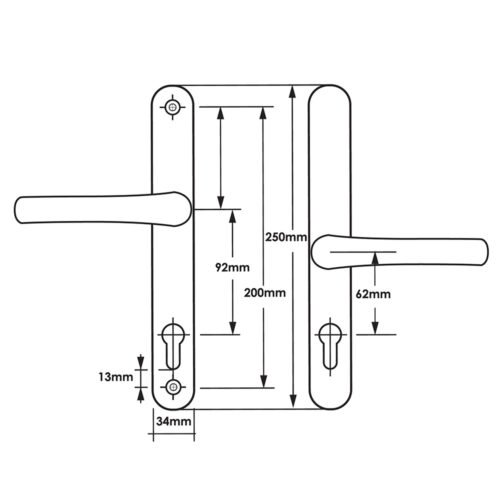 TSS Offset Lever Lever Multipoint Door Handles 92/62mm PZ – Sprung – 200mm Screw Centres