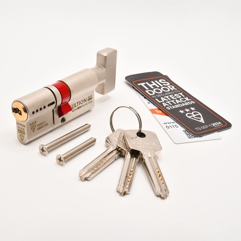 Ultion Plus Euro Key & Turn Cylinders British Standard Kitemarked TS007 3* provides the highest level of protection for exterior doors and padlocks. It is easy to install, packed with the latest anti-break technology, and comes complete with a £5,000 5-year guarantee.