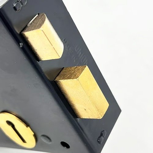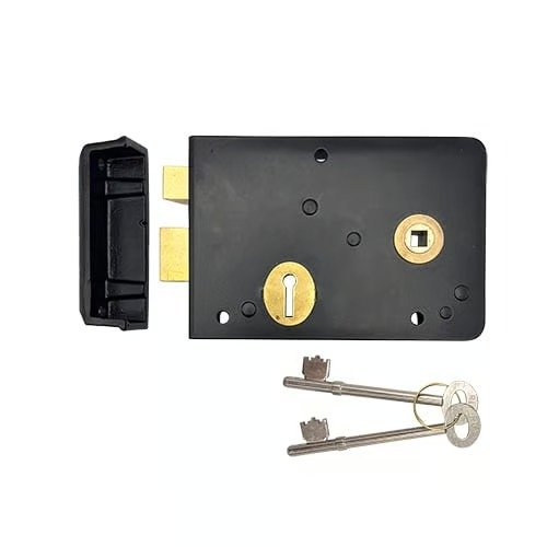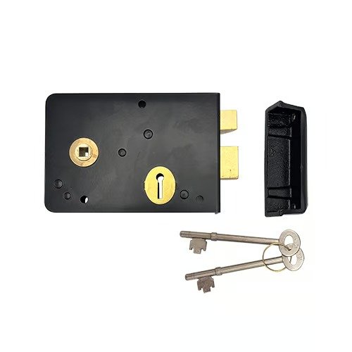 The Union 1439 Rim Sashlock is a very popular large case Rim Lock found throughout the UK. A basic security surface mounted product often found in residential or light commercial environments. Identified by the case dimensions and the offset heights of the keyway and spindle. The 2 extended length keys provided will reach through the thickness of the door from the outside. The 1439 features Antique style construction and rustic styling.