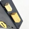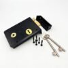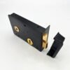 Available in black with electro brass features. supplied with staple and 2 keys. Handing must be selected when ordering.