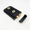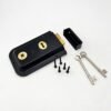 Available in black with electro brass features. supplied bagged with staple and 2 keys