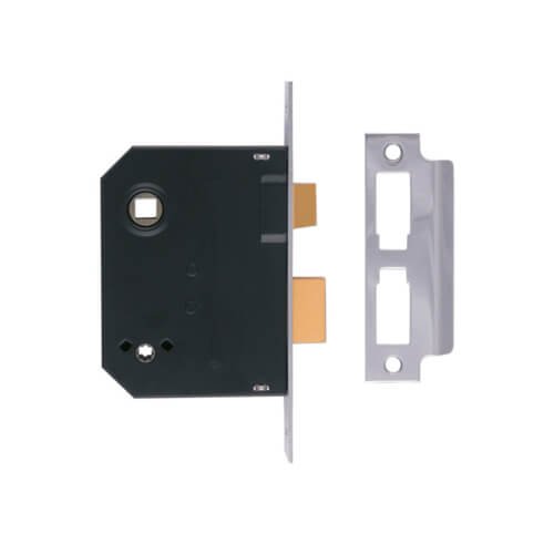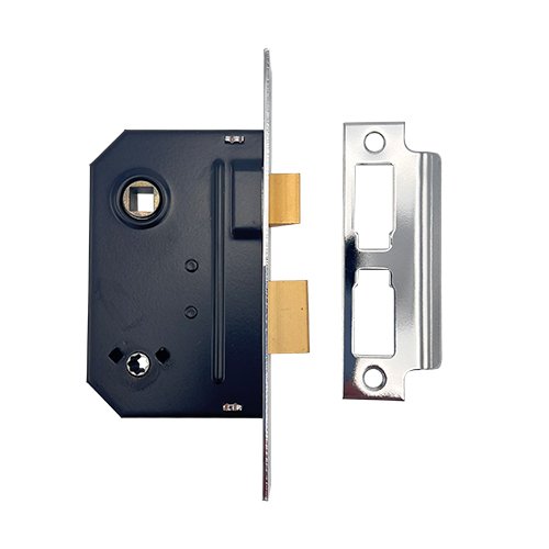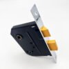 Finished with a black, powder-coating on the steel case and a 12.5mm Zinc alloy deadbolt and an 11mm Zinc alloy latch.