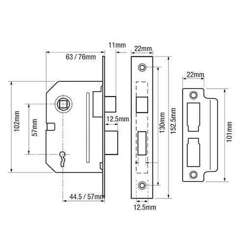 In line with a number of other mortice locks, these locks feature a black lock case but they have unique measurements that identify them from other mortice locks. Please refer to the line drawing for details.