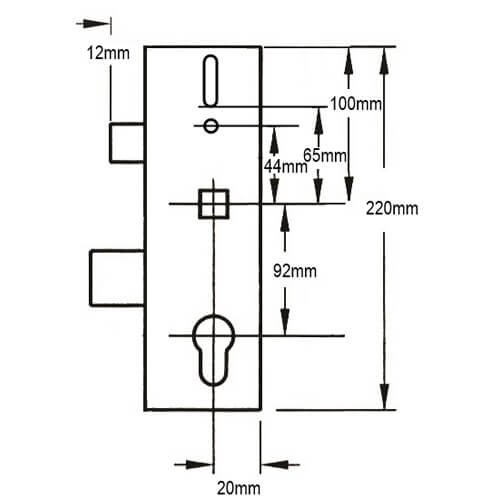 Westward multipoint door lock gearboxes are very distinctive, with a square design and no corner cut-outs. The overall length of the gearbox is 221mm and the width is the backset plus 18mm.