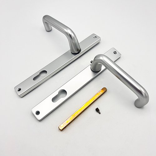 These Wilka handles have unsprung 92pz internal & external levers. With a backplate of 225mm x 30mm they are available in a silver finish. The levers are not fixed to the backplates so handing can be reversed on site.