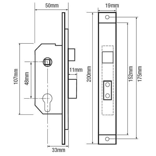 Willenhall M5 2 Euro Sashlock Case Extended 19mm Forend
