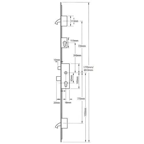 This Winkhaus Cobra multipoint door lock features 2 Hooks, 1 Deadbolt & 1 Latch with Lockout Facility.