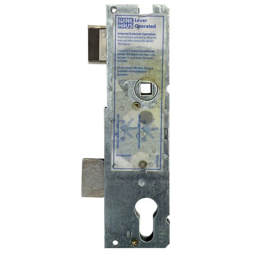 Please note that you may have encountered a really old Winkhaus gearbox that is attached to the faceplate with screws, with a passivated yellow finish. The sticker on the side (red = key wind and blue = lift lever) will denote the operation of the lock. These locks were handed and are no longer available.