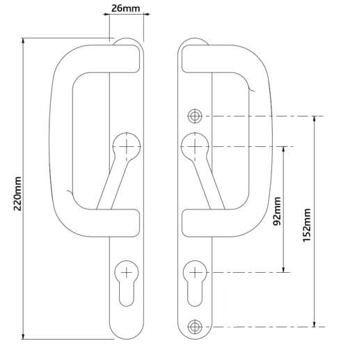 Winlock Bombardier patio door handle set is designed for sliding patio doors.