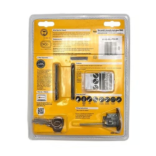 The Yale Y3 features a hold back snib, is supplied with 2 keys and a Yale Rim cylinder and is offered in Polished Brass or Polished Chrome finishes. Product is supplied boxed with a keep and fitting instructions.